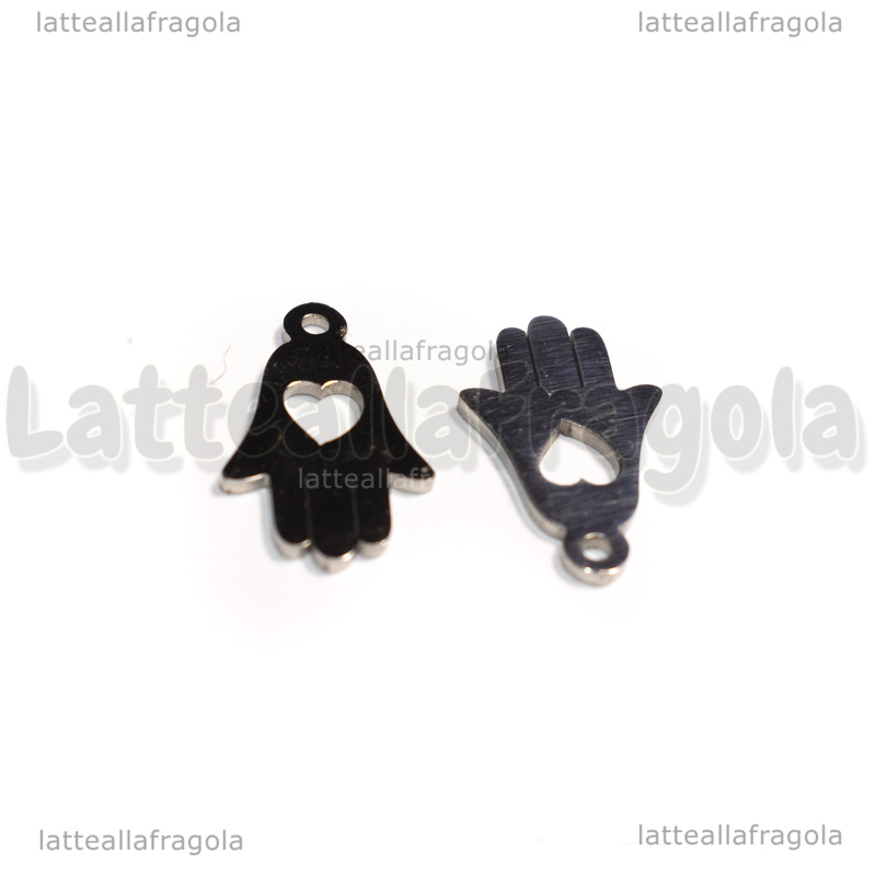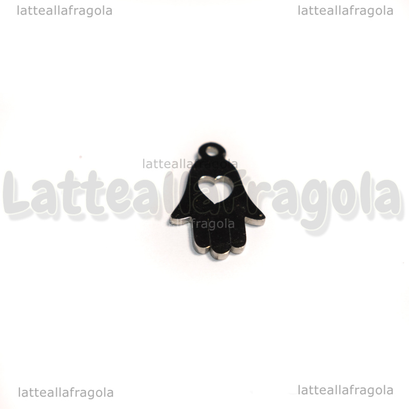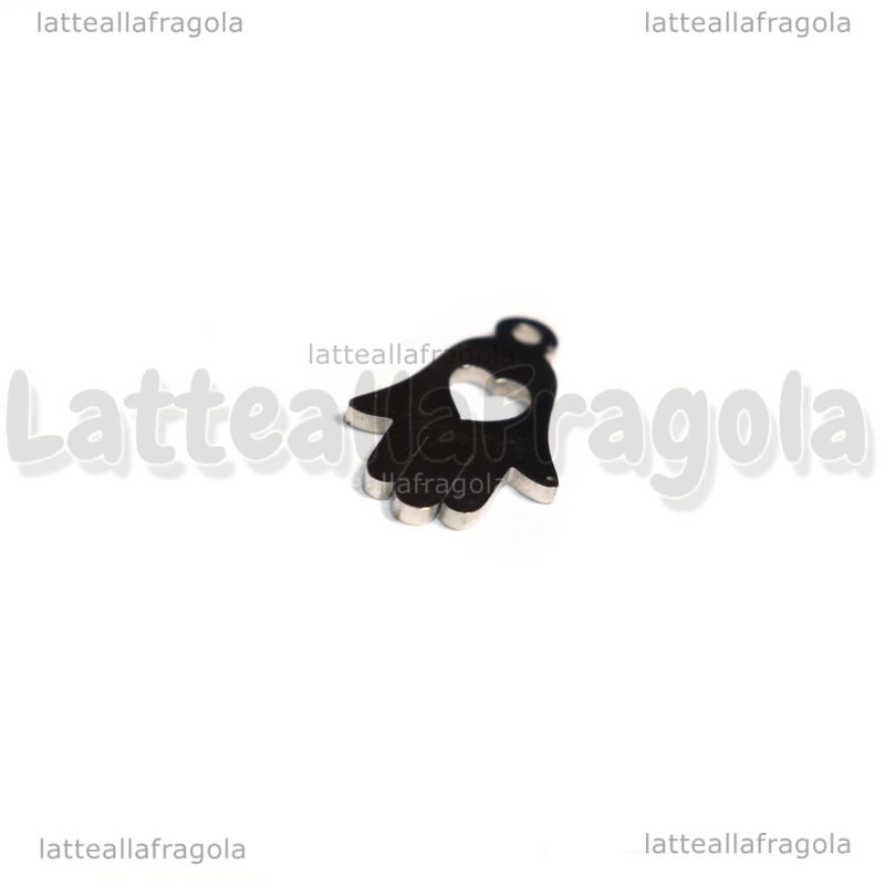 Ciondolo Mano di Fatima con cuore in Acciaio Inox 15x9.5x1.2mm