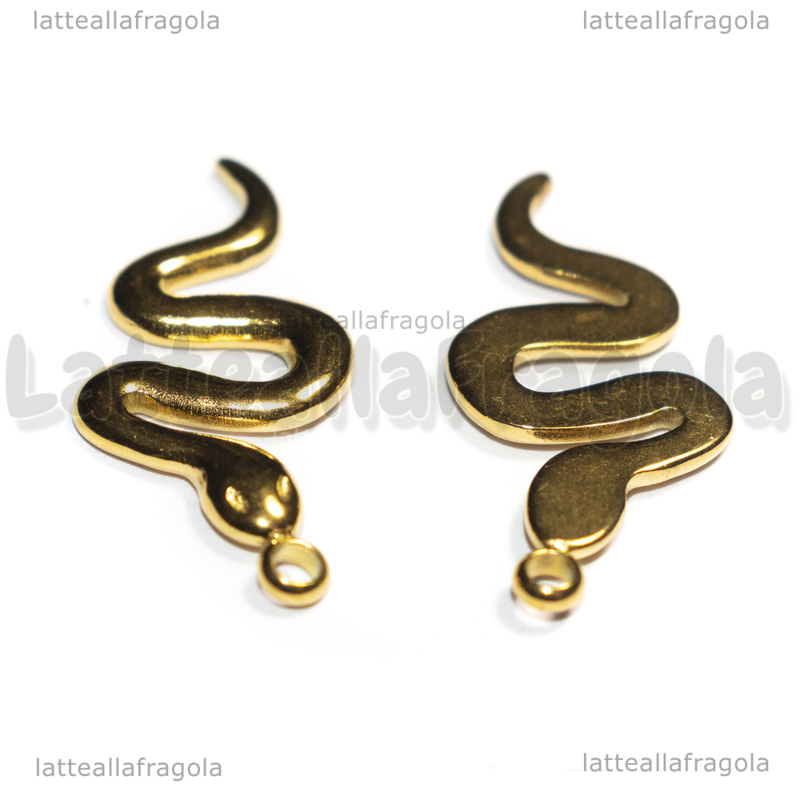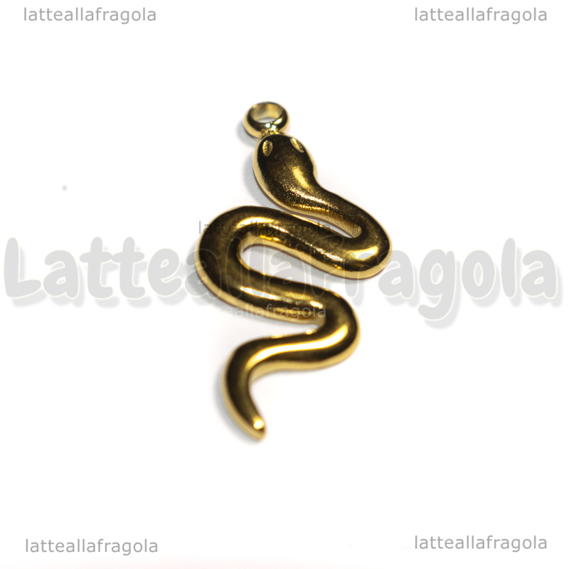 Ciondolo Serpente in Acciaio Inox Dorato 26x11x2mm