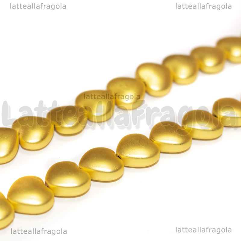 Cuori in Ematite oro satinato 9.5x10.5x5mm filo 40cm circa