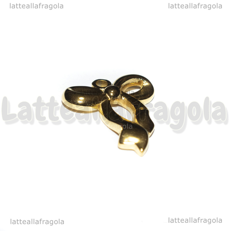 Ciondolo Fiocco in Acciaio Inox Dorato 19x15mm