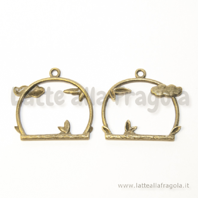 Charm in metallo color bronzo paesaggio con nuvoletta.