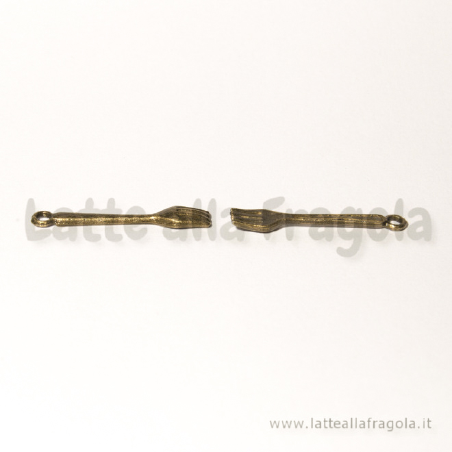 Charm forchettina in metallo zincato color bronzo 25x5mm
