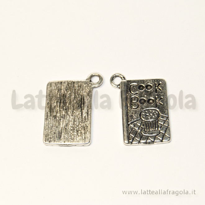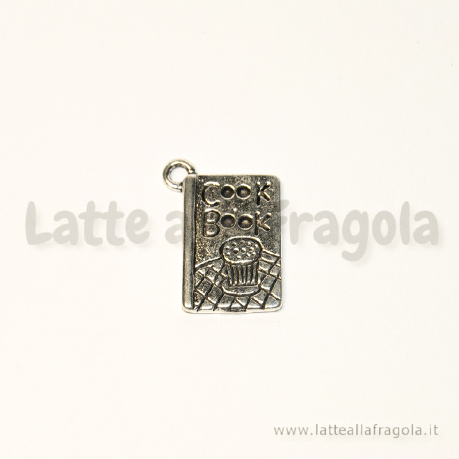 Ciondolo libro ricette in metallo argento antico 20x14mm