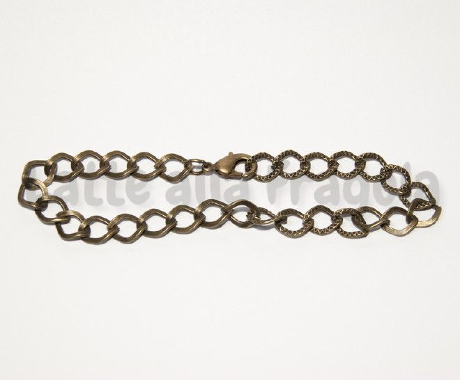 Bracciale in metallo color bronzo maglia ritorta lavorata 9x5mm 18cm