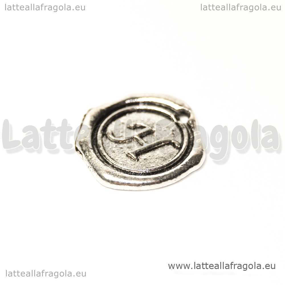 Ciondolo Sigillo lettera H in metallo argento antico 20mm