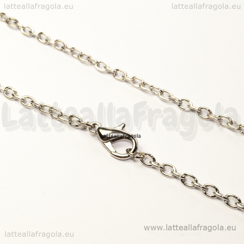 Collana in metallo toni argentati 77cm maglie ovali 3x2mm
