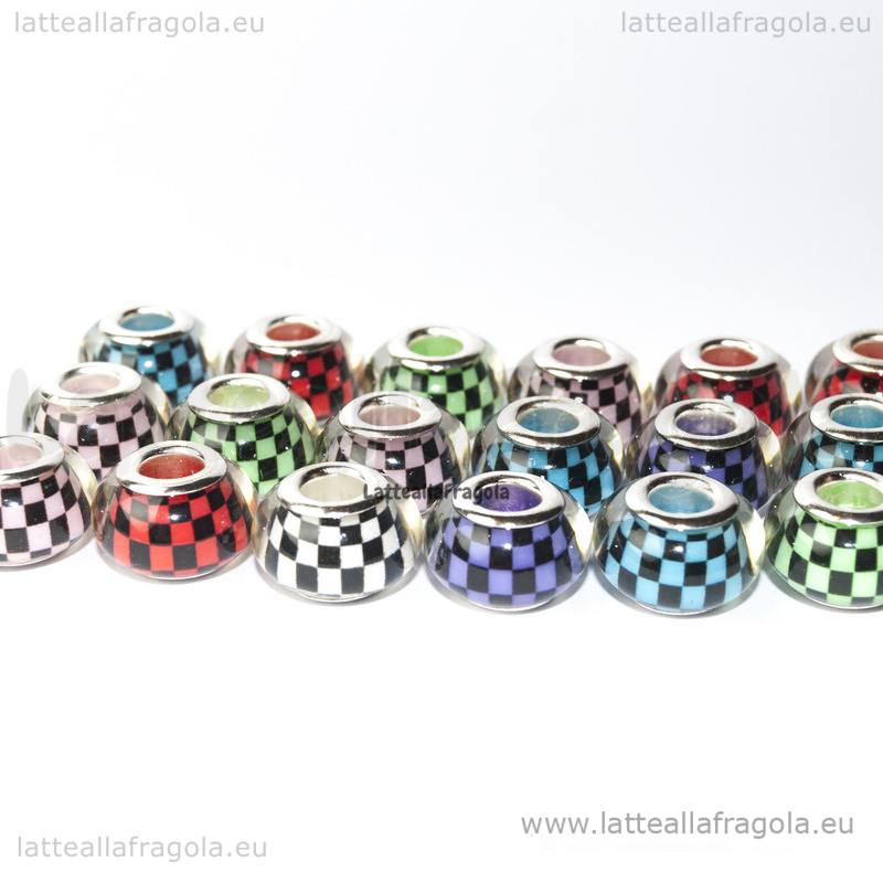5 Perle foro largo in acrilico fantasia Quadretti 14x9mm