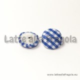 5 Bottoni in plastica e stoffa a quadri blu e bianco 14mm