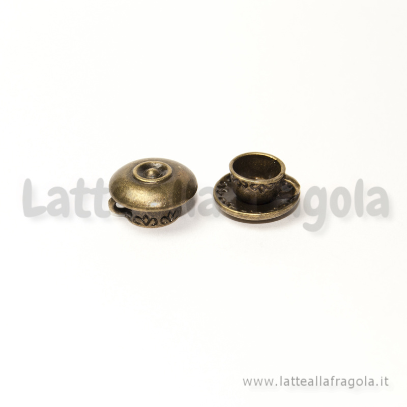 Ciondolo 3D tazzina e piattino in metallo bronzo antico 14x8mm