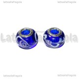 Perla in Lampwork Blu con rose foro largo 13x10mm