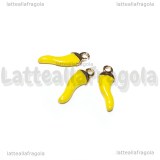 Charm Cornetto Portafortuna 3D in metallo dorato smaltato giallo 15x4.5mm