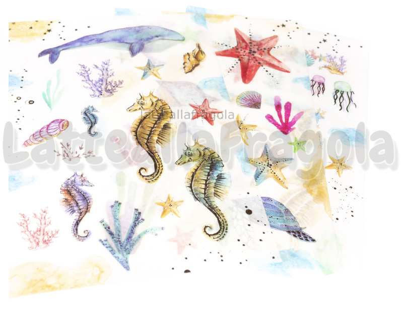 Adesivi in PVC Tema Mare 3 Fogli 15x10cm
