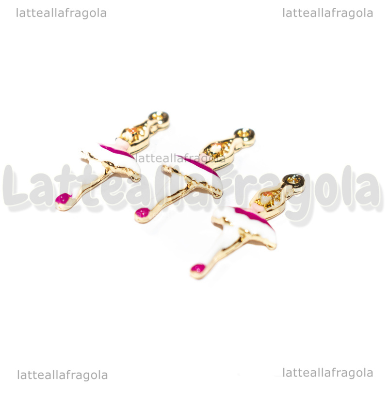 Ciondolo Ballerina 3D in metallo dorato smaltato 23x9mm