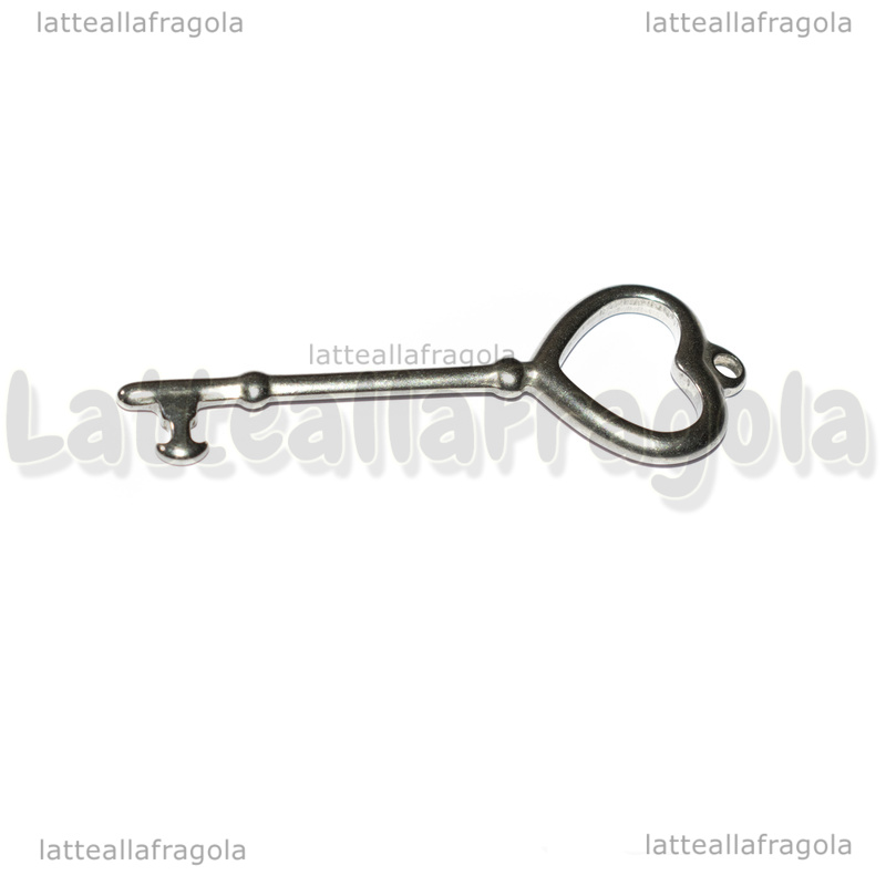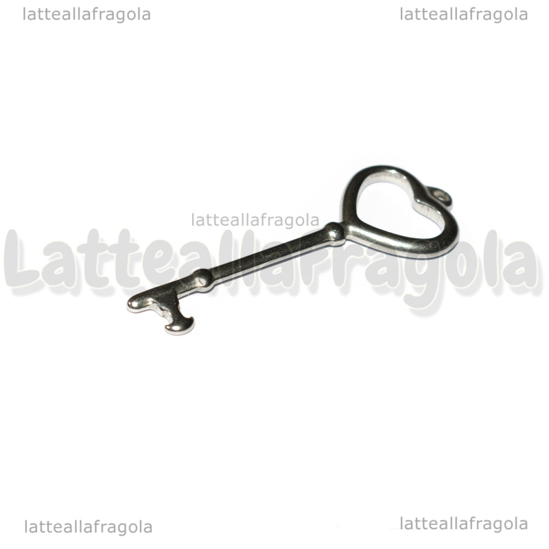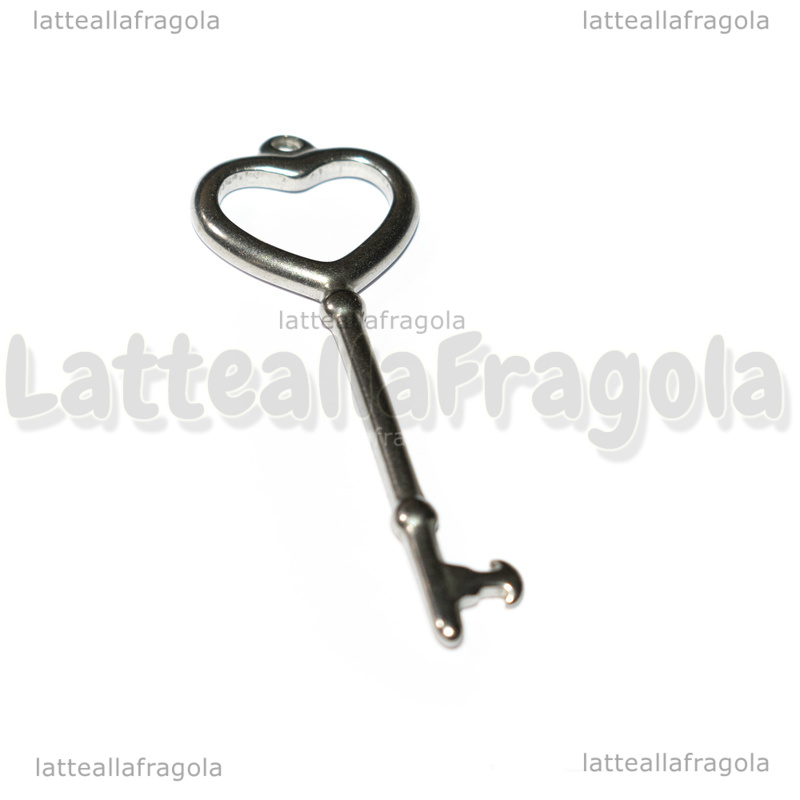 Ciondolo Chiave Cuore in Acciaio Inox 50x18mm