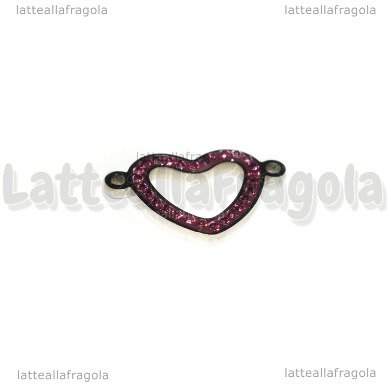 Connettore Cuore in Acciaio Inox con Strass Rosa 21x14mm