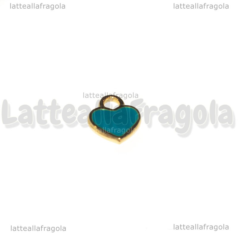 Ciondolo Cuore in Acciaio Inox Dorato smaltato Ottanio 12x10.5mm