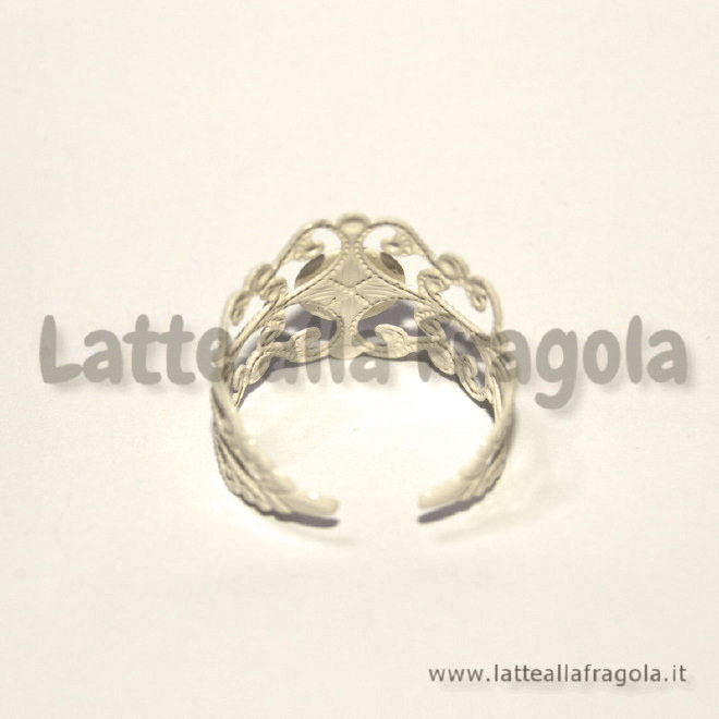 Base filigranata regolabile per anello in metallo smaltato di bianco