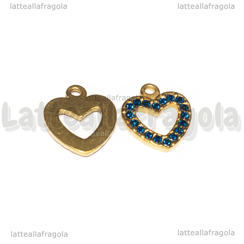 Ciondolo Cuore in Acciaio Inox Dorato con pavè di strass blu 15x14mm